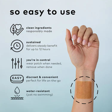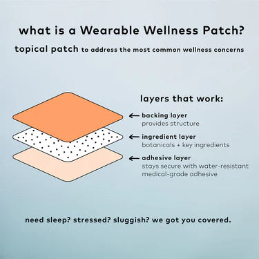 A plant-powered wearable wellness patch for minor aches and pains. Infused with plant-derived Menthol, Lavender, Arnica, and Aloe Vera. Keep moving with this water-resistant topical pain relief patch.